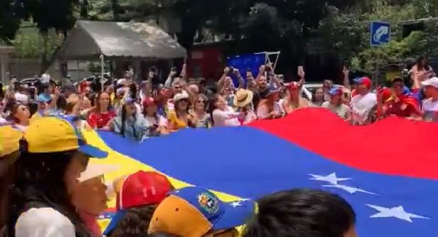 Con pancartas, la bandera venezolana y entonando el himno del país sudamericano, los ciudadanos de Venezuela ejercen su voto en la sede diplomática ubicada en la zona de Polanco.