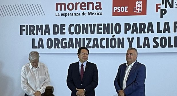 La dirigencia nacional de Morena a través de su presidente Mario Delgado Carrillo, firmó un Convenio para la Formación, la Organización y la Solidaridad con el Partido Socialista Obrero Español (PSOE) a través de su secretario de Organización Santos Cerdán León, para establecer estrategias que impidan el avance de la derecha a nivel mundial en contra de gobiernos progresistas como los de México y España mediante campañas orquestadas de desprestigio.
