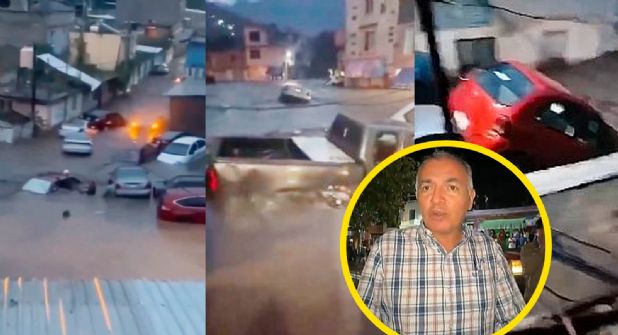 En redes sociales se difundieron videos de la emergencia ocurrida en Tejupilco, en donde se aprecia cómo el agua se lleva hileras de vehículos por las calles de la localidad.