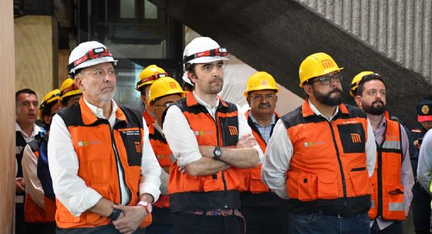 Ambos funcionarios llevaron a cabo un recorrido de supervisión de avances en las obras del segundo segmento de la Línea 1 que se encuentra en modernización.