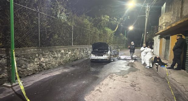 Un hombre desconocido fue hallado sin vida, calcinado, en el interior de un vehículo incendiado, en calles de la alcaldía Tlalpan.