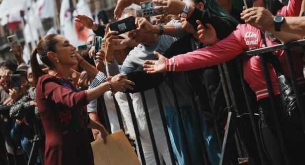 “Por eso, desde este zócalo histórico, reafirmamos nuestro compromiso con la cuarta transformación de la vida pública de México. Una transformación que le pertenece al pueblo. Estoy segura, porque lo escuchamos en las plazas, a lo largo de toda la república, vamos por el camino correcto, aquí estamos, de pie, con la fuerza de nuestra historia, con el orgullo de nuestro presente y con la esperanza de nuestro porvenir”, expuso.