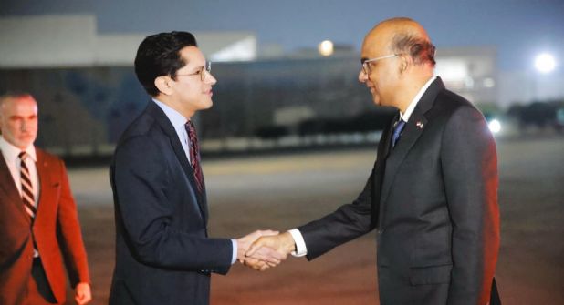 La noche de este domingo, Tharman Shanmugaratnam, acompañado por su esposa y su comitiva, recibió la bienvenida en las instalaciones de la Base Aérea Militar número 19 de la Ciudad de México.