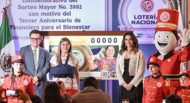 Por su parte, la directora general de Financiera para el Bienestar, Rocío Mejía Flores, destacó que el billete conmemorativo de la Lotería Nacional con motivo del tercer aniversario de FINABIEN tiene un profundo significado, pues celebra los tres años de la institución y simboliza la transformación de lo que fue Telecomm a una entidad moderna, cercana y comprometida con el bienestar de las familias mexicanas.