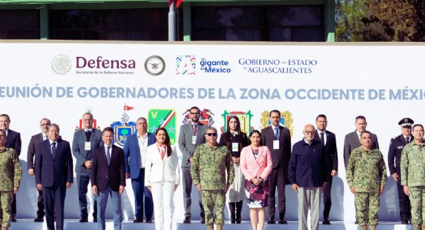 Como parte de la Segunda Reunión de Gobernadores de la Zona Occidente de México, la gobernadora de Aguascalientes, Tere Jiménez, participó con sus homólogos de Jalisco, Pablo Lemus Navarro; de Zacatecas, David Monreal Ávila; de Nayarit, Miguel Ángel Navarro; de Colima, Indira Vizcaíno, el comandante de la V Región Militar, Miguel Ángel Hernández Martínez; mandos militares; de la Guardia Nacional; de Seguridad Pública, y Fiscalías de los cinco estados, para dar seguimiento a las acciones y estrategias conjuntas que impulsan los cinco estados en coordinación con el Ejército mexicano y garantizar la seguridad en esta zona del país.