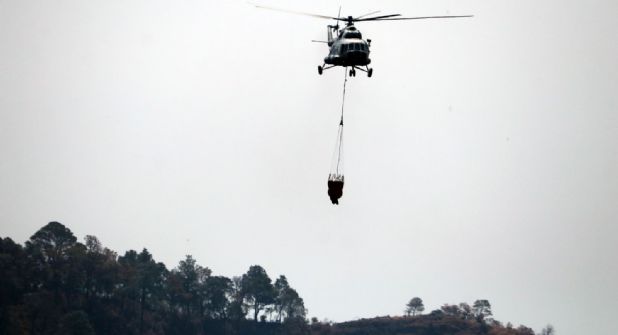 Para fortalecer los trabajos de combate participan dos equipos aéreos de la Marina y de la Defensa, los cuales realizan vuelos de reconocimiento y descargas de agua.