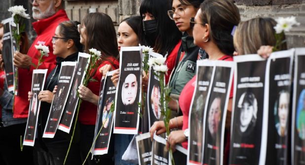 Frente a Palacio Nacional, los familiares clamaron: "Señora presidenta, autoridades de justicia, ¡no queremos impunidad! ¡Queremos justicia!".