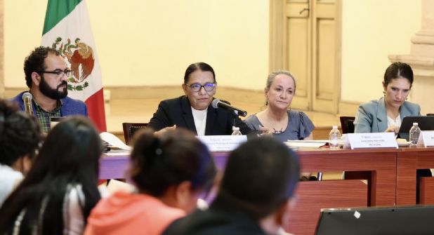La secretaria Gobernación, Rosa Icela Rodríguez; la fiscal Especializada en materia de Derechos Humanos de la Fiscalía General de la República (FGR), Sara Irene Herrerías, y la fiscal de la Ciudad de México, Bertha María Alcalde, se reunieron con integrantes del Frente Amplio de Familias Buscadoras de Verdad, Memoria y Justicia “Luciérnagas”.