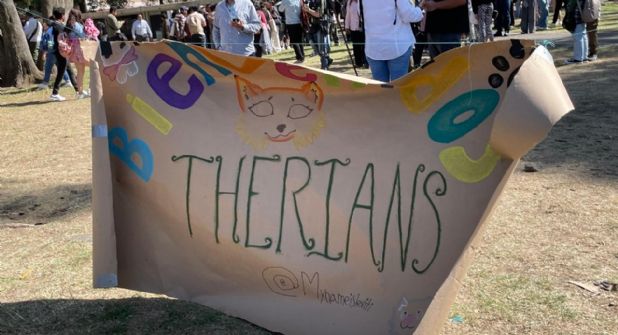 “Los Therians pueden identificarse como ellos quieran, pueden ser un perro, pueden ser un gato, pueden ser un ratón, pueden ser un águila, pueden ser un zorro, que son de los más comunes, y lo que realmente ellos sienten es una empatía directa con los animales, sentir que que representan rasgos que ellos conllevan y buscan caracterizarse para representar ese animal con el que se sienten identificados”, dijo Levy, de un par de organizadores del encuentro, mientras portaba un gran cartel de papel manila a modo de bienvenida a los Therians y quien aseguró que si llegaron, solo que no sacaron sus máscaras, intimidados por las multitudes que querían conocerlos.