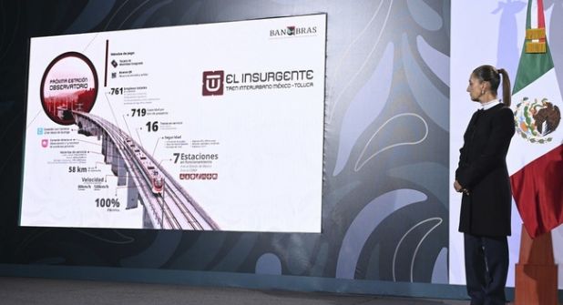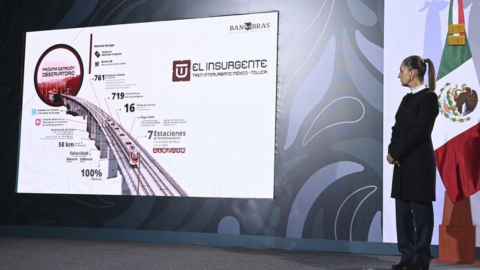 El director general del Banco Nacional de Obras y Servicios Públicos (Banobras), Jorge Mendoza Sánchez, informó que el Tren El Insurgente lleva, al 30 de enero, 869 días de operación, 15 millones de personas usuarias, con un promedio diario de 22 mil, en sus cinco estaciones activas, de las que Santa Fe y Toluca Centro son las de mayor afluencia. Sus ocho trenes han realizado más de 14 mil horas de servicio ininterrumpido y 67 mil vueltas, que representan más de 5 millones de kilómetros, convirtiéndose en el transporte más utilizado en la zona. Detalló que contará con 16 trenes en servicio permanente, dos en reserva y dos en mantenimiento, con una velocidad máxima de 120 kilómetros por hora (km/h) y un promedio de 80 km/h, para eventualmente alcanzar una velocidad máxima de 160 km/h y un promedio de 90 km/h.