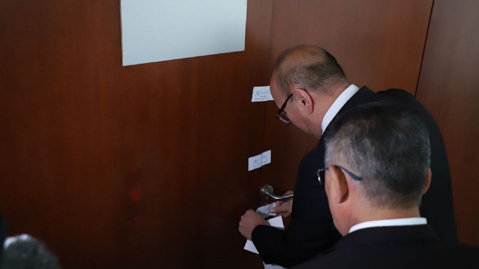 Tras darse a conocer la reactivación del salón de belleza, personal de resguardo parlamentario colocó sellos en la puerta del lugar donde horas antes fue captada la senadora del PVEM, Juanita Guerra, aplicándose un tinte.