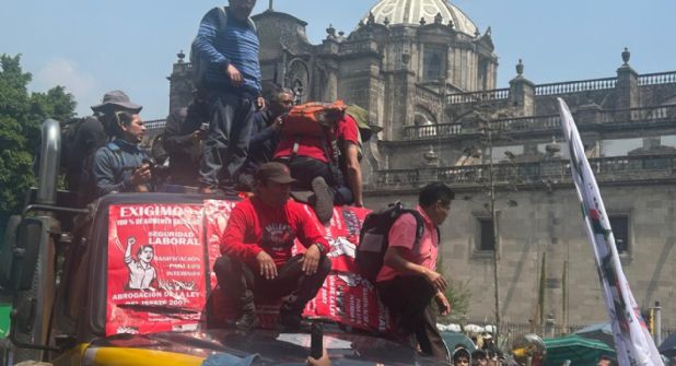 A pesar de que elementos de la policía de tránsito pretendieron frenar con grúas y patrullas tipo Pick up el paso del vehículo con sonido de la Coordinadora Nacional de Trabajadores de la Educación (CNTE), los maestros que participan en el paro nacional de 72 horas, doblegaron a los uniformados y pasaron con la camioneta a la Plancha del Zócalo.
