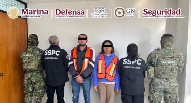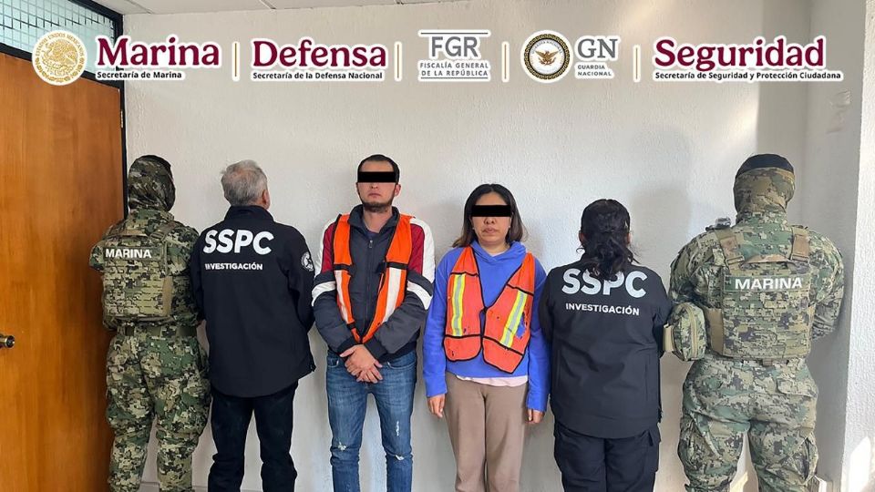Elementos de fuerzas federales aprehendieron en el Estado de México a Rodolfo César Rivera Álvarez y a Areli Manrique Nopaltitla, vinculados a la comercialización de medicamentos apócrifos.