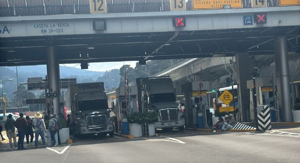 Los vehículos y transportes foráneos varados en la autopista México Toluca, estan imposibilitados a avanzar, debido a que el personal de la caseta de cobro activó el sistema anti fuga.