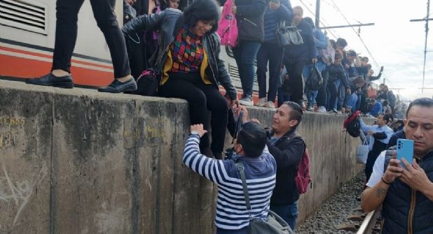 Autoridades capitalinas informaron que debido al desperfecto, los usuarios tuvieron que descender de los trenes y caminar sobre vías para salir en la estación más próxima.