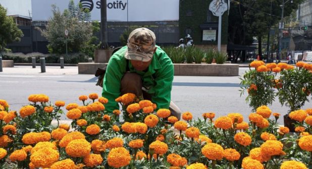 Personal de la Secretaría de Obras y Servicios (SOBSE) lleva a cabo la plantación de 219 mil flores de cempasúchil en los camellones y áreas verdes de las principales avenidas de la Ciudad de México.