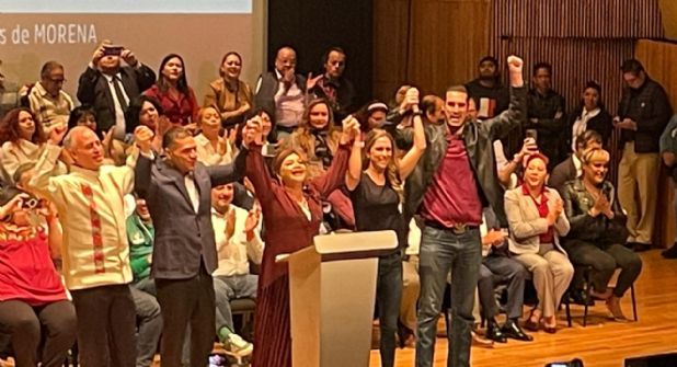 Flanqueada por Omar García Harfuch, ganador de la encuesta interna de Morena para la candidatura a la Ciudad de México pero que se quedó fuera por la cuota de género, Hugo López Gatell, Mariana Boy y Miguel Torruco, así como por funcionarios de Morena de diferentes niveles, Brugada asumió la responsabilidad de convencer a quienes todavía no creen en la 4T.