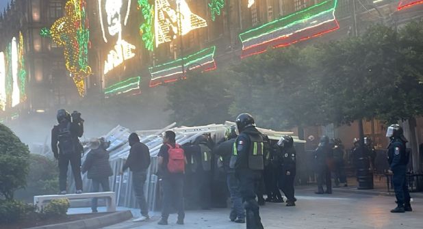 Los embozados emprendieron actos violentos en contra de los edificios del gobierno de la Ciudad de México, en el Zócalo capitalino, donde arrojaron una batería de explosivos de fabricación casera, con el potencial de causar daño.