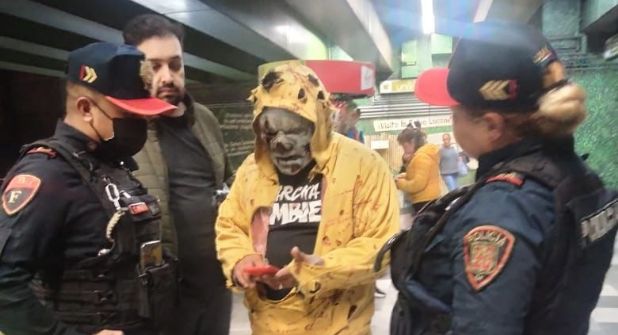Un trabajador de una tienda de disfraces fue detenido momentáneamente en la estación del metro Viveros, Línea 3, por espantar a usuarios y usuarias con una máscara de zombie.