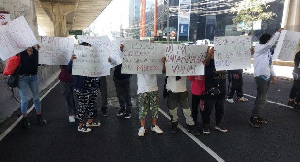 La protesta se realizó en Periférico norte, frente al número 184, colonia Reforma Social, alcaldía Miguel Hidalgo, cuya publicidad, de acuerdo con los manifestantes, es ilegal y pasa por alto las disposiciones de la Ley de Publicidad Exterior.