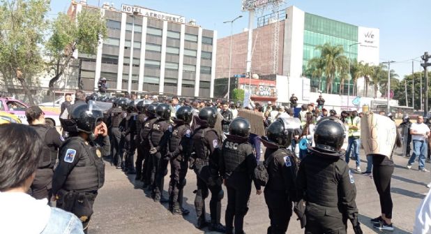 Trabajadores de la aerolínea Interjet que se manifestaron con el cierre de la vialidad de Bulevar Puerto Aéreo, fueron replegados por policías antimotines de la SSC.