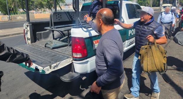 Esta mañana los agentes de tránsito también apoyaron con camionetas tipo Pick Up, para llevar a mujeres y hombres a las estaciones subsecuentes al lugar del desperfecto.
