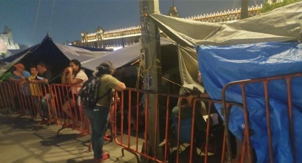 Los docentes delimitaron un espacio en el Zócalo de la ciudad para mantener el plantón y no interrumpir el acto político que este miércoles por la tarde encabezará la candidata de la Coalición Juntos Hacemos Historia.