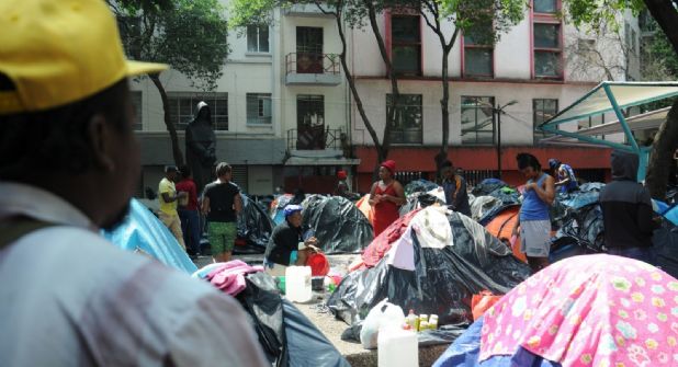 Agentes del Instituto Nacional de Migración y elementos de la Guardia Nacional, levantaron el campamento de migrantes que permanecían en la plaza Giordano Bruno en la colonia Juárez, donde esperaban a que sus trámites ante la Comisión Mexicana de Ayuda a Refugiados avanzaran.