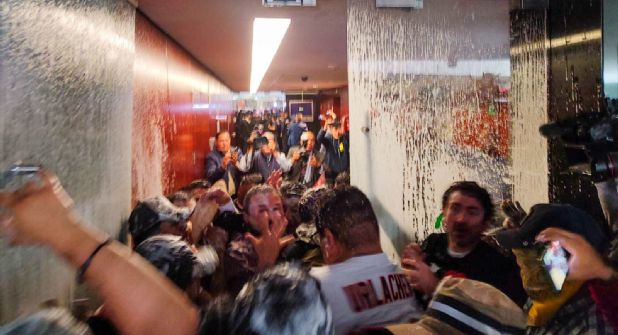Cabe mencionar que algunas personas utilizaron extintores para romper las puertas del Senado y a su vez, los empujones provocaron que se reventaran las protecciones de vidrio en la parte alta de esta sala de discusiones.