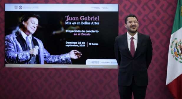 “Y el domingo a partir de las 19 horas Juan Gabriel, su concierto en bellas artes en pantalla, que hubo personas que quisieron verlo en la cineteca, no alcanzaron, no hubo espacio y empezaron a pedirnos que pudiera hacerse aquí en el Zócalo y aquí lo vamos a tener”, acotó.