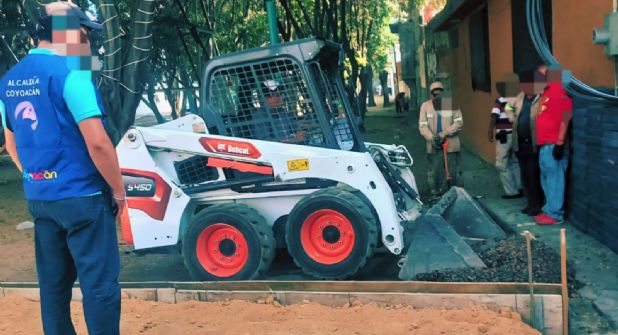 Inmediatamente, al ser del conocimiento de la autoridad y con el apoyo de personal de Escudo Coyoacán, así como un representante del área de monitoreo e incidencias urbanas de la Secretaría de Obras de la ciudad de México, llegó al sitio una cuadrilla de trabajadores de la alcaldía Coyoacán con un camión de volteo, uno de los llamados “bobcat” o pala mecánica y diversas herramientas, para desmantelar los trabajos de albañilería que ya habían comenzado algunas personas en la zona.