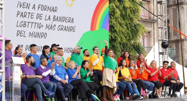 Desde el Zócalo capitalino, donde encabezó el despliegue de la bandera más grande del mundo de la comunidad LGBTTTIQ+, la mandataria capitalina aseguró que la Ciudad de México, al ser una capital global, asume el compromiso de contribuir con el fomento a la paz, además de hacer un llamado al alto inmediato de la guerra.