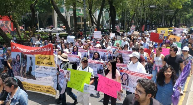 Los grupos de apoyo a familiares de Ana Amelí partieron de la glorieta del árbol del Ahuehuete rumbo a la Fiscalía capitalina, para llevar a cabo un mitin.