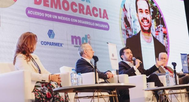 Jorge Álvarez Máynez, aspirante presidencial de Movimiento Ciudadano, firmó junto con Coparmex el Acuerdo por un México con Desarrollo Inclusivo que incluye una agenda de seguridad, justicia, educación y respeto al medio ambiente.