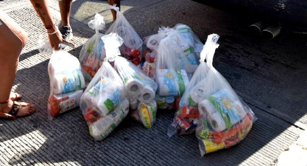Aseguraron 760 bolsas de plástico con productos de la canasta básica, 261 cajas de aceite: 3 mil 200 paquetes de sal, 159 paquetes de arroz, 53 cajas de sopa, 24 cajas de atún y 47 costales de avena.