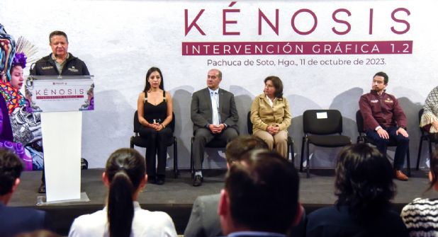 Bajo la premisa de aprovechar todos los espacios públicos en beneficio del pueblo, el gobernador de Hidalgo, Julio Menchaca Salazar, inauguró la exposición “Kénosis, intervención gráfica 1.2”, segundo ejercicio en su tipo dentro del Edificio de Gobierno.