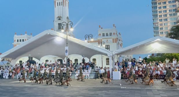 Al terminar también mostraron un espectáculo de pirotecnia y música con el que deleitaron a la población que acudió a verlo, acompañando así a las fuerzas armadas.
