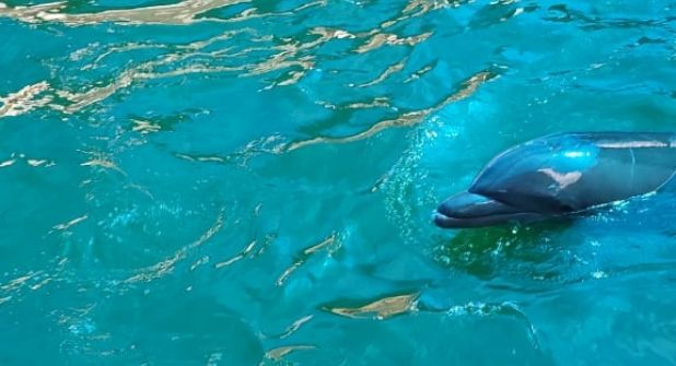 Explicó que en una alberca fueron encontrados dos delfines, una hembra y un macho adultos, aparentemente sanos y con un comportamiento normal.