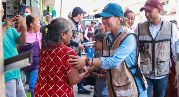 En su visita, la gobernadora recorrió la calle Bernal Díaz del Castillo junto con los comerciantes y pobladores con quienes verificó los avances alcanzados durante estas brigadas de atención.