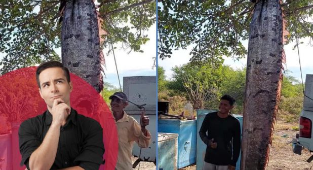 Mientras el sujeto narraba, sus compañeros aprovecharon para tomarse una foto con la especie y bromear sobre la situación.