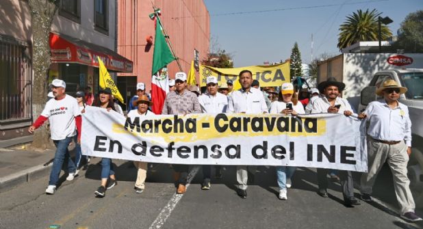 Este jueves llegó a Toluca la marcha-caravana en defensa del Instituto Nacional Electoral (INE) que desde el domingo pasado inició en Morelia el ex gobernador perredista de Michoacán, Silvano Aureoles Conejo.