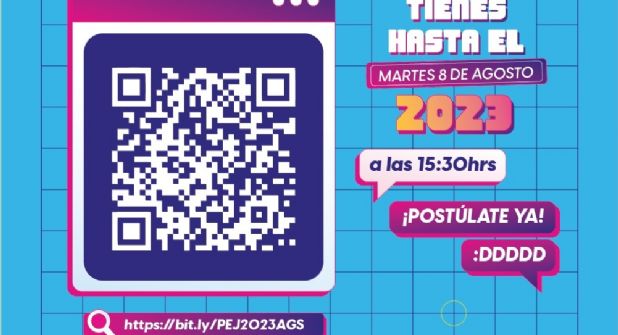El registro cierra el martes 8 de agosto; la inscripción y recepción de documentos se realizará de manera presencial en el IAJU, con dirección en Av. Paseo de Ojocaliente No. 556, Fracc. Gómez Portugal, y en las instancias municipales de la juventud, con atención de lunes a viernes de 9:00 a 15:00 horas. Para mayores informes, llamar al Tel. 449 910 21 41, o por medio del correo electrónico desarrollojuveniliaju@gmail.com.