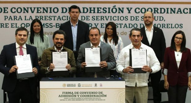 A través del Instituto Mexicano de Seguro Social (IMSS), el Órgano Público Descentralizado (OPD) IMSS Bienestar y el gobierno de Morelos firmaron el Convenio de Adhesión y Coordinación para la prestación de servicios de salud, con lo que se agilizará el desarrollo de infraestructura y equipamiento en beneficio de las personas sin seguridad social.