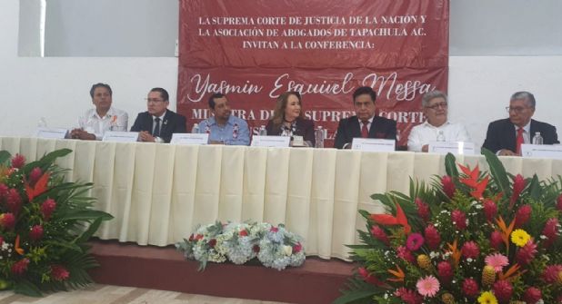 La Ministra de la Suprema Corte de Justicia de la Nación, afirmó en este espacio al que acudió invitada por la Asociación de Abogados de Tapachula, que para hacer frente al fenómeno migratorio, es necesario atenderlo desde un enfoque de derechos humanos, promoviendo un orden de paz y justicia, por lo que el acceso a ésta independientemente de la situación migratoria de las personas, cobra la mayor relevancia.