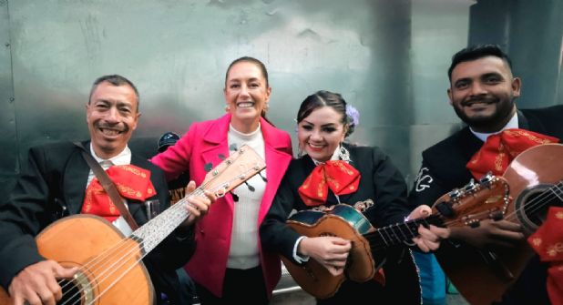 A su llegada a esta entidad, la ex jefa de Gobierno de la Ciudad de México fue recibida por un grupo de simpatizantes que le llevaron al tradicional mariachi “Tequila”.