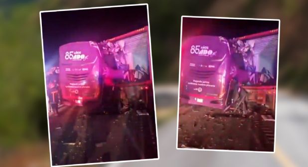 El autobús ADO GL, con el número económico 8046, durante la madrugada de este viernes 27 de diciembre, impactó por la parte trasera al tráiler a la altura de la comunidad de Los Molinos.