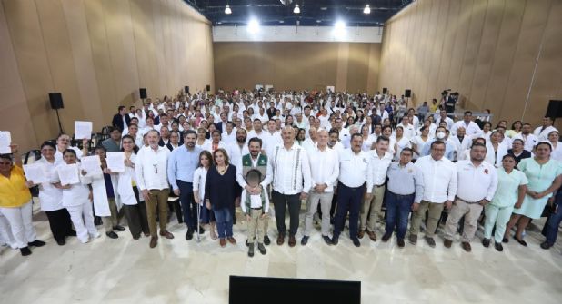 En tanto, el gobernador Carlos Manuel Merino aseguró a los trabajadores beneficiados que son parte fundamental de una transformación profunda que se lleva a cabo en el sistema de salud nacional y que garantiza el acceso universal, efectivo y oportuno a los servicios de salud, enfocado en el respeto a los derechos humanos, a la diversidad, con perspectiva de género, diversidad cultural, participación social y bajo los principios de transparencia y rendición de cuentas.