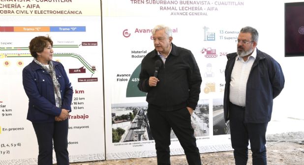 En gira de trabajo por Nextlalpan, Estado de México, el Presidente Andrés Manuel López Obrador y la Gobernadora del Estado de México, Delfina Gómez Álvarez, realizaron un recorrido para supervisar las obras de ampliación del Tren Suburbano, ramal que saldrá de la Estación Lechería al Aeropuerto Internacional Felipe Ángeles (AIFA), ubicado en el municipio de Tecámac.