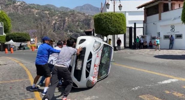 Desde las 10:30 de la mañana, los inconformes iniciaron el bloqueo de manera intermitente y posteriormente total, de hecho los habitantes indignados por el crimen, voltearon dos taxis.
