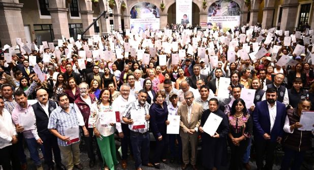 Durante la Campaña de Entrega de Documentos Agrarios que se realiza en coordinación con la Secretaría de Desarrollo Agrario, Territorial y Urbano del Gobierno de México, la Mandataria estatal dijo que “es un logro y un reconocimiento a su trabajo y a su esfuerzo, además fortalecemos que el Poder de Servir sea más que una frase, se traduce en acciones que transforman la vida y la calidad de vida de nuestros mexiquenses”.